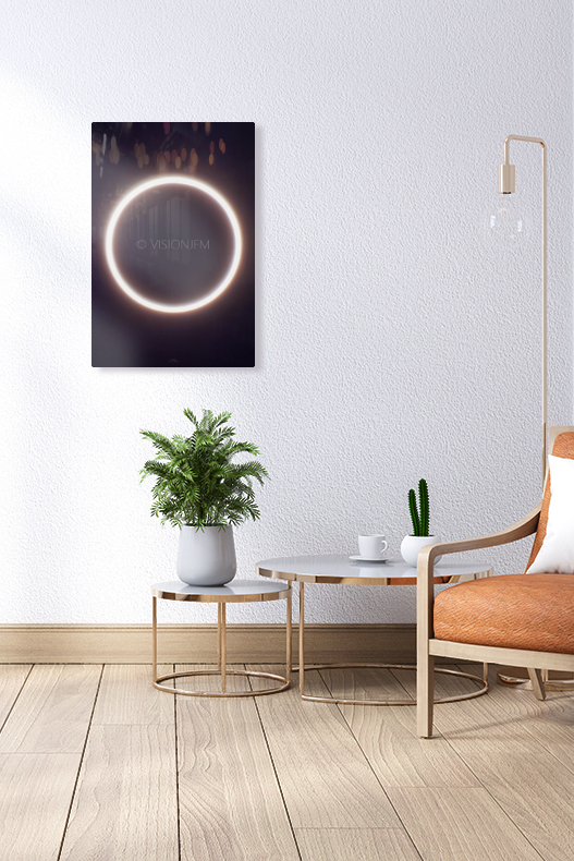 Dans la simplicité parfaite de cette forme, Alliance saisit l’instant où deux astres fusionnent en un seul anneau de lumière. Dans cette étreinte céleste, la lune plus discrète, le soleil plus vaste, forment un équilibre subtil entre douceur et puissance.